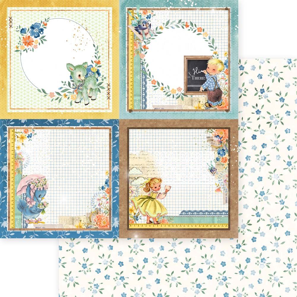 12 sheets of 12x12, 80lbs double sided papers (6 designs, 2 sheets each)