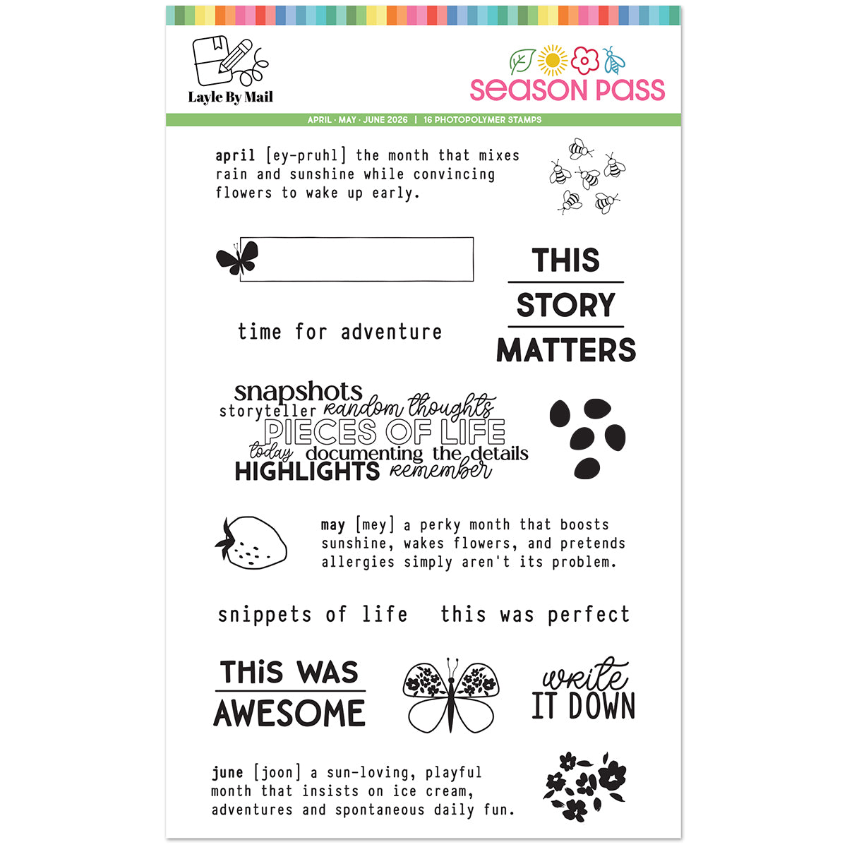 Season Pass 2.0... a quarterly program/kit with exclusive products for memory keeping enthusiasts, including paper, die cuts, rub-ons, stickers & stamps. Perfect for traveler's notebooks, planners, journals, scrapbook pages, mini books, cards and more.