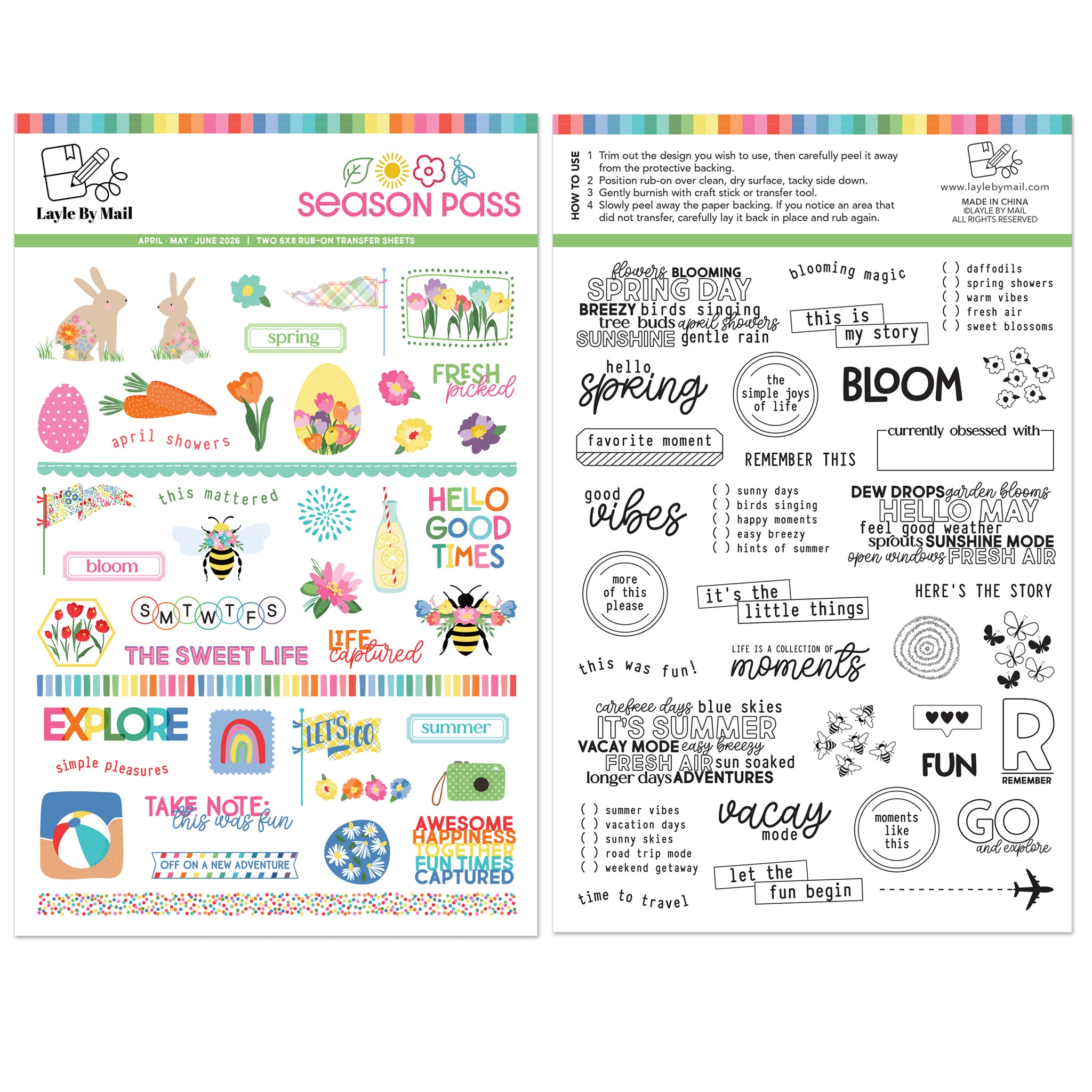 (2) 6x8 sheets of rub-on transfers (1 color, 1 black)